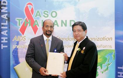 จากภาพ : มร. จีวัน วาร์มา (ซ้าย) รองประธานฝ่ายทรัพยากรบุคคล บริษัท เจนเนอรัล มอเตอร์ส (ประเทศไทย) จำกัด รับมอบใบรับรองมาตรฐานการบริหารจัดการด้านเอดส์ในสถานประกอบกิจการ (ASO Thailand) เป็นปีที่ 4 จาก ผดุงศักดิ์ เทพหัสดิน ณ อยุธยา อธิบดีกรมสวัสดิการและคุ้มครองแรงงาน กระทรวงแรงงาน