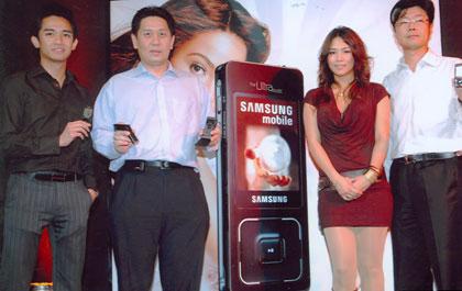 ซัมซุง นำโดย มร.ชุง จูน คิม (ขวาสุด) ผู้จัดการทั่วไป ธุรกิจโทรคมนาคม บริษัท ไทยซัมซุง อิเคลโทรนิคส์ จำกัด และนายพุทธชาติ รังคสิริ (ที่สองจากซ้าย) จากแซม คอร์ปอเรชั่น พร้อมด้วยศิลปินรับเชิญ “แคล-สุภาลักษณ์ นีมะโยธิน” ร่วมแถลงข่าวเปิดตัวโทรศัพท์มือถือ “อัลตร้า มิวสิค F300 (Ultra Music F300)” มิวสิคโฟน 2 หน้า ตัวแรกของโลกที่เป็นทั้งโทรศัพท์มือถือและเครื่องเล่น MP3 ในหนึ่งเดียว พร้อมเปิดตัว “บียอนเซ่ (Beyonce)” ซูเปอร์สตาร์ชื่อดังมาร่วมเป็นพรีเซนเตอร์ให้กับแคมเปญโทรศัพท์มือถือซัมซุง อัลตร้า มิวสิค F300 ทั่วโลก