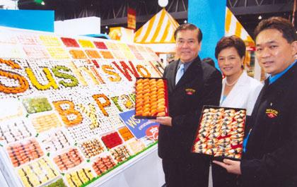 ดร.ธงชัย ธาวนพงษ์ (ซ้ายสุด) ประธานเจ้าหน้าที่บริหาร พร้อมด้วยนายอนุรัตน์ โค้วคาสัย (ขวาสุด) ประธานเจ้าหน้าที่บริหารฝ่ายการตลาดและปฏิบัติการ บริษัท พรานทะเล มาร์เก็ตติ้ง จำกัด ผู้ผลิตและจำหน่ายอาหารแช่แข็งภายใต้แบรนด์ “พรานทะเล” สร้างกระแสซูชิฟีเวอร์ โชว์ “ซูชิยักษ์นับ 10,000 คำ” ซึ่งมีขนาด 3 x 1.5 เมตร ใช้ข้าวญี่ปุ่นสวยเกรดเอ จำนวน 240 กิโลกรัม ประกอบด้วยหน้าซูชิต่างๆ มากมาย ภายในงานแสดงสินค้าอาหาร “THAIFEX – World of Food Asia 2007” เพื่อเป็นสีสันสำหรับผู้ที่เยี่ยมชมภายในบูธ ภายใต้แนวความคิด “Sushi’s World by Prantalay” เพื่อตอกย้ำความเป็นผู้นำด้านอาหารประเภทซูชิ รสชาติต้นตำรับญี่ปุ่นขนานแท้ นอกจากนี้ ยังมีการจำหน่ายผลิตภัณฑ์มากมาย เช่น อาหารทะเลแช่แข็งพร้อมปรุงและพร้อมทาน ทั้งในแบบแช่แข็งและชิล (chill) รวมทั้งซูชิ (Sushi) อาหารทะเลสด (Fresh Seafood) สินค้าระบบ MAP (Modified Atmosphere Packaging) และ ไส้กรอกซีฟู้ด เป็นต้น ที่งาน THAIFEX – World of Food Asia 2007 เมื่อเร็วๆ นี้