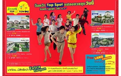นอกจากจะได้แปลงที่สวยที่สุดแล้ว บริษัทฯ ยังได้เพิ่มโปรโมชั่นพิเศษสำหรับ Top Spot คือ รับ Land Coupon คูปองส่วนลดราคาที่ดิน เพื่อให้ลูกค้าได้ฟรีค่าที่ดินสูงสุดถึง 30 ตร.วา สำหรับบ้านเดี่ยว และ ฟรีค่าที่ดิน 5 ตร.วา สำหรับทาวน์เฮาส์ และ Extra Coupon คูปองเติมน้ำมันฟรี มูลค่ากว่า 5,000-20,000 บาท สำหรับ 10 ท่านแรกที่จองบ้านที่นำมาจัดรายการ