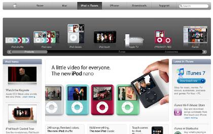 iPod เป็นตระกูลเครื่องเล่นเพลงดิจิตอลที่เป็นที่นิยมที่สุดในโลก พิสูจน์ได้จากยอดขายที่มากกว่า 100 ล้านเครื่อง วันนี้ แอปเปิ้ลประกาศเปิดตัว iPod รุ่นใหม่ที่จะสร้างความตื่นเต้นให้แก่แฟน iPod ทุกคน ด้วย iPod shuffle ในสีใหม่ 4 สี iPod classic ที่จุเพลงได้ถึง 40,000 เพลง iPod nano ที่มีฟังก์ชั่นเล่นไฟล์วิดีโอ รวมไปถึงไอพอดแบบใหม่ที่ปฏิวัติวงการเครื่องเล่นเพลงดิจิตอล iPod touch ที่ผู้ใช้สามารถสั่งงานได้ด้วยการสัมผัสหน้าจอเครื่องเล่น ผู้ใช้ iPod สามารถเสริมแต่ง iPod ของตนได้ตามใจชอบ ด้วย accessories ที่สร้างสรรค์มาเพื่อ iPod เท่านั้น เช่นซอง iPod สำหรับการออกกำลังกาย ลำโพงแบบพกพา ฯลฯ