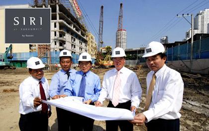 นายอภิชาติ จูตระกูล (คนที่สี่จากซ้าย) ประธานอำนวยการ บริษัท แสนสิริ จำกัด (มหาชน) ร่วมกิจกรรมสำรวจพื้นที่ก่อสร้าง โครงการ Siri At Sukhumvit by Sansiri คอนโดมิเนียมระดับพรีเมี่ยม ใจกลางย่านสุขุมวิท-ทองหล่อ ซึ่งเป็นอาคารสูง 34 ชั้น จำนวน 460 ยูนิต มูลค่าโครงการเกือบ 3,200 ล้านบาท ปัจจุบันได้รับการอนุมัติจากสำนักงานนโยบายและแผนทรัพยากรธรรมชาติและสิ่งแวดล้อม (สผ.) เป็นที่เรียบร้อย และเริ่มดำเนินการก่อสร้างตามแผนงานแล้ว โดยกิจกรรมการสำรวจพื้นที่ก่อสร้างโครงการในครั้งนี้ มี Mr.Ganesh Annamalai (คนแรกจากซ้าย) Managing Director Jardine Schindler (Thai) Ltd. นายโยธิน อัชทวีวรรณ (คนที่สองจากซ้าย) กรรมการผู้จัดการ บริษัท สยามไดกิ้นเซลส์ จำกัด, นายวัชระ จิรังบุญกุล (คนที่สามจากซ้าย) ประธานกรรมการบริหาร บริษัท สี่พระยาก่อสร้าง จำกัด ในฐานะพันธมิตรทางธุรกิจที่ร่วมดำเนินการพัฒนาโครงการ ร่วมเป็นเกียรติในกิจกรรมครั้งนี้ด้วย ทั้งนี้คาดว่าโครการดังกล่าวจะก่อสร้างแล้วเสร็จในปี 2553 หนึ่งในการพัฒนาโครงการคอนโดมิเนียมระดับพรีเมียม ในฐานะที่บริษัทแสนสิริเป็นผู้นำและมีประสบการณ์มาอย่างยาวนาว