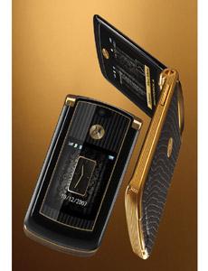 MOTORAZR ลักชัวรี่ อีดิชั่น โดดเด่นด้วยรูปลักษณ์ที่ดูหรูหรางดงาม พร้อมพรั่งด้วยคุณสมบัติและอุปกรณ์เสริมครบครัน เหมาะสำหรับผู้ที่ชื่นชอบโทรศัพท์ที่มีดีไซน์ที่เย้ายวนใจโดยเฉพาะ โก้หรูด้วยเส้นขอบทอง 18 เค บนผิวเคลือบโลหะสีดำขลับ ตัวเครื่องด้านหลังเป็นแบบซอฟท์ทัชตกแต่งด้วยวัสดุลายหนังงู ดีไซน์เพรียวบางด้วยความหนาเพียง 12.05 มม. เพิ่มความหรูหราด้วยลายเส้นบนเลนส์ด้านหน้าตัวเครื่อง พร้อมลวดลายประดุจเพชรเจียระไนตรงด้านข้าง และลายเส้นแกะสลักบนปุ่มกดรูปวงแหวนด้านในตัวเครื่อง