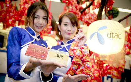 ดีแทคมอบของขวัญรับตรษจีนให้ลูกค้าดีแทคและสยามพารากอน รับง่าย ๆ โชค 2 ต่อ ต่อที่ 1 รับสิทธิสอยอั่งเปา feel goood ลุ้นรางวัลพิเศษมูลค่ารวมกว่า 1 ล้านบาท จากต้นไม้นำโชคที่จะนำความโชคดีมาให้ทุกคนผ่านซองอั่งเปาบรรจุคุ้กกี้ทำนายดวงชะตา ต่อที่ 2 รับคูปองส่วนลดสูงสุด 70% จากร้านค้าที่ร่วมรายการภายในศูนย์การค้าสยามพารากอน 45 ร้านค้า อาทิ SHANGHAI TANG, PRIMA GEMS, ASIA BOOKS, MARTHA STEWART SIGNATURE และร้านค้าอื่น ๆ อีกมากมาย กติกาง่าย ๆ ลูกค้าดีแทครับโชค 2 ต่อได้ทันที โดยไม่ต้องจับจ่ายสินค้า เพียงแสดงหน้าจอโทรศัพท์มือถือดีแทค สำหรับลูกค้าสยามพารากอนที่ช้อปสินค้าภายในศูนย์การค้าสยามพารากอนครบ 2,000 บาท ก็จะได้รับโชค 2 ต่อเช่นกัน โดยติดต่อรับโชค 2 ต่อได้ที่ dtac feel goood Park สวนจีนโบราณ ณ บริเวณ Fashion Gallery ชั้น 1 นอกจากนี้ สำหรับลูกค้าทั่วไปสามารถแวะชมและชิมการชงชาจีนแบบโบราณแท้ ๆ จากร้านชาจีนเก่าแก่ของกรุงเทพฯ ฟรี ตลอดทั้งวัน ทุกวันอีกด้วย และสำหรับผู้ที่ต้องการซิมเบอร์พิเศษจากดีแทค สามารถติดต่อได้ที่บูธดีแทคตามจุดต่าง ๆ ภายในศูนย์การค้าสยามพารากอน