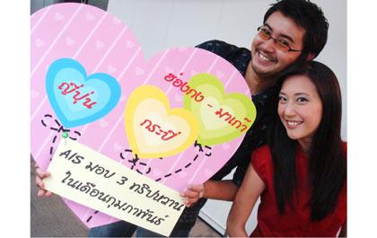 นายสมชัย เลิศสุทธิวงศ์ รองกรรมการผู้อำนวยการ สายงานการตลาด บริษัท แอดวานซ์ อินโฟร์ เซอร์วิส จำกัด (มหาชน) หรือ เอไอเอส กล่าวว่า “ในเดือนกุมภาพันธ์ซึ่งเป็นเดือนแห่งความรักปีนี้ เอไอเอสได้จัดแคมเปญหวานเพื่อให้ลูกค้าร่วมลุ้นไปพักผ่อนกับ 3 ทริปหวาน ในบรรยากาศ 3 ที่ 3 สไตล์ทั้งในประเทศและต่างประเทศ ตั้งแต่วันที่ 1 – 29 กุมภาพันธ์ 2551 โดยทริปแรก ลุ้นรับแพ็คเกจทัวร์ฮ่องกงดิสนีย์แลนด์ มาเก๊า พร้อมพ็อคเก็ตมันนี่ 10,000 บาท สัปดาห์ละ 2 รางวัลๆ ละ 2 ที่นั่ง เพียงลูกค้าใช้บริการ MMS , Voice2U และ M2G จากกิจกรรม “บอกรักหลากวิธีทั้งเสียงเพลงและภาพ” ประกาศรายชื่อผู้โชคดีทุกสัปดาห์ทาง www.mobilelife.ais.co.th