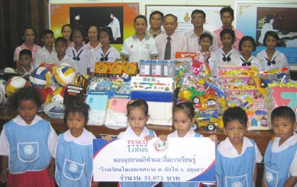 นางเพ็ญพิมล อมาตยกุล ผู้จัดการทั่วไปแผนกกิจกรรมเพื่อสังคมเทสโก้ โลตัส เป็นตัวแทนมอบอุปกรณ์กีฬาและสื่อการเรียนรู้ ให้กับโรงเรียนในเขตเทศบาล ต.ผักไห่ อ.ผักไห่ จ. พระนครศรีอยุธยา ได้แก่ รร. วัดโพธิ์ (ผักไห่วิทยาคาร) ,รร. วัดอมฤต (สุทธิประสิทธิ์) ,รร. วัดตาลานเหนือ (สัตบุศย์สมบูรณ์) ,รร. วัดตาลานใต้ (เจริญวิทยา) ,รร. วัดผ่านอ่างทอง (นิยมประมุข) และ รร. วัดบ้านอ้อ (บ้านอ้อวิทยาคาร) มูลค่า 51,973 บาท โดยได้รับเกียรติจากนายศุภชัย จำปาทอง ผู้อำนวยการโรงเรียนวัดโพธิ์ เป็นตัวแทนรับมอบ ณ โรงเรียนวัดโพธิ์ เมื่อเร็ว ๆ นี้