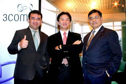 นายชิงชัย เมฆทิพย์พาชัย (กลาง) ผู้จัดการประจำประเทศไทย บริษัท ทรีคอม (ประเทศไทย) จำกัด แถลงข่าวประกาศความสำเร็จจากการได้รับความไว้วางใจจากธุรกิจทุกภาคส่วนในการนำเทคโนโลยี 3Com SCN Solutions ไปใช้ในการเพิ่มประสิทธิภาพของระบบเครือข่ายให้กับองค์กร โดยมีนายสมศักดิ์ จุลเสน (ขวา) ผู้อำนวยการศูนย์เทคโนโลยีสารสนเทศและการสื่อสาร สำนักปลัดกระทรวงอุตสาหกรรม ร่วมเป็นวิทยากรบรรยายถึงการเพิ่มประสิทธิภาพการให้บริการภารกิจของกระทรวงอุตสาหกรรมในการขยายระบบเครือข่ายเพื่อเพิ่มประสิทธิภาพการให้บริการแก่องค์กรธุรกิจอุตสาหกรรม และนายโฆษิต ชิตพงศ์ (ซ้าย) รองหัวหน้ากลุ่มงานบริการระบบเครือข่ายและสื่อสาร มหาวิทยาลัยสงขลานครินทร์ บรรยายถึงความคุ้มค่าในการลงทุนจากการเลือกใช้อุปกรณ์ระบบเครือข่ายที่มีประสิทธิภาพ ณ โรงแรมเชอราตัน แกรนด์ สุขุมวิท เมื่อเร็วๆ นี้