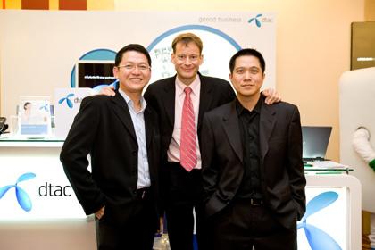นายแอนดรูว์ แม็คบีน (กลาง) ผู้อำนวยการอาวุโส แผนก Business Division และนายฐิตกร อุษยาพร (ขวา) ผู้อำนวยการฝ่าย dtac data distribution (3DX) บริษัท โทเทิ่ล แอ็คเซ็ส คอมมูนิเคชั่น จำกัด (มหาชน) หรือดีแทคร่วมเป็นวิทยากรในงานสัมมนา “Windows Mobile: Mobility Technology and PDA Phone Innovation 2008” ที่จัดขึ้นโดยเอช ที ซี โดยมีนายณัฐวัชร์ วรนพกุล (ซ้าย) ผู้จัดการประจำประเทศไทย บริษัทเอช ที ซี (ไทยแลนด์) จำกัด ร่วมให้การต้อนรับ โดยดีแทคได้เข้าร่วมแนะนำทิศทางแนวโน้มเทคโนโลยี 3G ในประเทศไทย การประยุกต์ใช้งานพีดีเอโฟนเพื่องานธุรกิจ รวมถึงแนะนำโซลูชั่นที่พร้อมรองรับใช้งานทั้งธุรกิจและชีวิตส่วนตัวสำหรับกลุ่มลูกค้าองค์กร