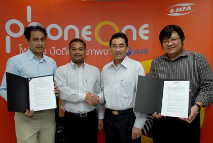 นายกุลดิษฐ์ สมุทรโคจร (ที่สองจากขวา) กรรมการผู้จัดการ บริษัทไวร์เลส ดีไวซ์ ซัพพลาย จำกัด เซ็นสัญญาร่วมกับ ม.ร โมฮัมเหม็ด เชาว์กัท อาซิม (ที่สองจากซ้าย) กรรมการผู้จัดการ บริษัท เมเปิล อินเตอร์เนชั่นแนล จำกัด ผู้จัดจำหน่ายมือถือรายใหญ่ในประเทศบังคลาเทศ ในการนำมือถือโฟนวันไปจัดจำหน่ายและให้บริการหลังการขายในประเทศบังคลาเทศ ณ อาคารพหลโยธินเซ็นเตอร์ เมื่อเร็วๆนี้