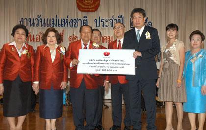 นายเวทิต โชควัฒนา (ที่ 3 จากขวา) กรรมการ บริษัท สหพัฒนพิบูล จำกัด (มหาชน) มอบเงินมูลค่า 600,000 บาท แก่สภาสังคมสงเคราะห์แห่งประเทศไทย ในพระบรมราชูปถัมภ์ เพื่อสนับสนุนการจัดงานวันแม่แห่งชาติ ประจำปี 2551 โดยมีนายณัฐพัชร์ อินทุภูติ (ที่ 3 จากซ้าย) ประธานสภาสังคมสงเคราะห์แห่งประเทศไทยฯ เป็นตัวแทนรับมอบ