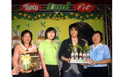 เก๋นภา จิตติเรืองวิชัย (ที่ 2 จากซ้าย) ผู้จัดการกลุ่มผลิตภัณฑ์ บริษัท ทิปโก้ เอฟแอนด์บี จำกัด พร้อมพรีเซ็นเตอร์ทิปโก้ คูล ฟิต บีม-กวี ตันจรารักษ์ ส่งมอบต้นกล้าที่นักเรียนร่วมแรงกันปลูกในโครงการ “ทิปโก้ คูล ฟิต ช่วยพิชิตโลกร้อน” เพื่อรวบรวมนำไปปลูกป่าร่วมกับกรมป่าไม้ โดยมี อำนวยพร ชลดำรงกุล (ขวาสุด) หัวหน้าฝ่ายประชาสัมพันธ์และเผยแพร่ กรมป่าไม้ เป็นตัวแทนรับมอบ ในทัวร์มินิคอนเสิร์ตซึ่งจัดขึ้นแห่งแรก ณ โรงเรียนหอวัง ปทุมธานี เมื่อเร็วๆ นี้