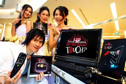 เอชพี เปิดตัวพีซีสายพันธุ์ใหม่ล่าสุดที่พร้อมเข้ามาปฏิวัติการใช้งานคอมพิวเตอร์ของผู้บริโภค โดยจะเนรมิตให้ความบันเทิงรูปแบบดิจิตอลให้กลายเป็นประสบการณ์ส่วนตัวที่น่าตื่นตาตื่นใจอย่างแท้จริง ภายในงาน HP Metro Bangkok … Do you wanna touch? ผ่านการแสดง Pantomime ชุด The Life in TOUCH สะท้อนรูปแบบไลฟ์สไตล์ ชีวิตคนเมืองและแฟชั่นโชว์ สุดพิเศษ จาก Kai โดยดีไซเนอร์มือหนึ่งของไทย ไข่ สมชาย แก้วทอง โดยมีนายแบบ นางแบบ ร่วมเปิดทุกประสาทแห่งการสัมผัส อาทิ ชมพู่ อารยา เอ. ฮาร์เก็ต, นก อุษณีย์ วัฒฐานะ, ออร์แกน ราศี วัชรเมฆพล, โอลิเวอร์ เฟเวอร์ และนิพิธ ฮันเก้ พร้อมด้วยมินิคอนเสิร์ตเปิดประสบการณ์แบบทัช โดย 2 หนุ่มนักล่าฝัน บ้านเอเอฟ 4 นัท ณัฐ ศักดาทร และ ต้อล วันธงชัย อินทรวัตร ณ ลานแฟชั่นฮอลล์ ชั้น 1 สยาม พารากอน