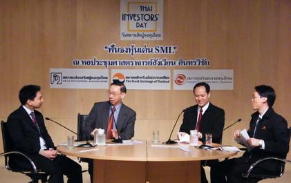 ภัทรียา เบญจพลชัย กรรมการและผู้จัดการ ตลาดหลักทรัพย์ ฯ กล่าวเปิดสัมมนาหัวข้อ “ฟันธงหุ้นเด่น SML” ในงานวันตลาดนัดผู้ลงทุนไทย (Thai Investors’ Day) โดยเชิญนักวิเคราะห์ผู้เชี่ยวชาญในแวดวงตลาดทุน อาทิ พิชัย เลิศสุพงศ์กิจ ผู้อำนวยการฝ่ายอาวุโส บลจ. ธนชาต กวี ชูกิจเกษม ผู้ช่วยกรรมการผู้จัดการ บลจ. กสิกรไทย และสุกิจ อุดมศิริกุล ผู้ช่วยกรรมการผู้จัดการ สถาบันวิจัยนครหลวงไทย ร่วมแนะนำหุ้นเด่นที่น่าสนใจเก็บเข้าพอร์ตลงทุน ทั้งขนาดเล็ก ขนาดกลาง และขนาดใหญ่ ดำเนินรายการ โดย ดร.ไพบูลย์ เสรีวิวัฒนา