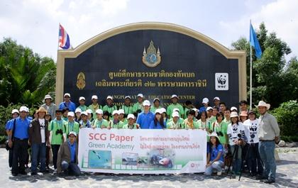 ในภาพ: นายขวัญชัย วัชระไพโรจน์ ผู้จัดการส่วนซ่อมบำรุง บริษัท ผลิตภัณฑ์กระดาษไทย จำกัด ในธุรกิจกระดาษ เครือซิเมนต์ไทย (SCG Paper) พร้อมเหล่าตัวแทนจาก SCG Paper นำทีมเยาวชนกว่า 40 ชีวิต ที่ได้รับคัดเลือกให้เข้าร่วมโครงการ SCG Paper Green Academy หรือโครงการค่ายเยาวชนรุ่นใหม่ใส่ใจสิ่งแวดล้อม ไปศึกษาธรรมชาติและและร่วมกันปลูกป่าชายเลนที่ศูนย์ศึกษาธรรมชาติกองทัพบกบางปู จังหวัดสมุทรปราการ เพื่อเป็นการปลูกฝังทัศนคติและจิตสำนึกเรื่องสิ่งแวดล้อมให้กับเยาวชน