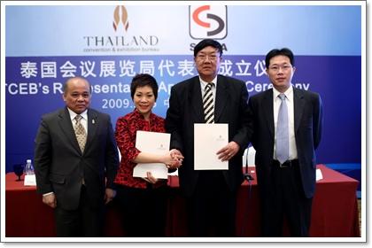 นครเซี่ยงไฮ้ – นางศุภวรรณ ตีระรัตน์ (ที่ 2 จากซ้าย) ผู้อำนวยการฝ่ายงานแสดงสินค้านานาชาติ รักษาการ ผู้อำนวยการ สำนักงานส่งเสริมการจัดประชุมและนิทรรศการ (องค์การมหาชน) หรือ สสปน. เดินหน้าดันกลยุทธ์และเทคนิคการทำตลาดต่างประเทศ โดยแต่งตั้ง นายกง เหว่ยกัง (ที่ 2 จากขวา) รองประธาน Shanghai Convention & Exhibition Industries Association เป็นตัวแทนของ สสปน. อย่างเป็นทางการ เพื่อทำหน้าที่เป็นศูนย์ให้บริการครบวงจรในการประสานงาน สื่อสารกับสมาคมผู้ประกอบการค้า บริษัทจัดงานแสดงสินค้า และหน่วยงานที่เกี่ยวข้องในเมืองเซี่ยงไฮ้ ปักกิ่ง และเมืองอื่นๆ ในสาธารณรัฐประชาชนจีน โดยมี นายชลิต มานิตยกุล (ที่ 1 จากซ้าย) กงสุลใหญ่ ประจำนครเซี่ยงไฮ้ สาธารณรัฐประชาชนจีน และ นายเฉิน ชีจุน (ที่ 1 จากขวา) รองผู้อำนวยการฝ่ายงานแสดงสินค้า China Council for the Promotion of International ร่วมเป็นสักขีพยาน ณ ห้อง Marble Room โรงแรม Portman-Ritz Calton นครเซี่ยงไฮ้ สาธารณรัฐประชาชนจีน เมื่อเร็วๆ นี้