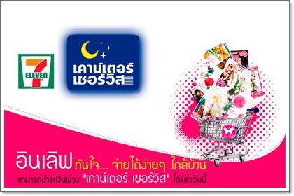 เคาน์เตอร์เซอร์วิสร่วมกับบริษัท อินเลิฟ พับลิชชิ่งจำกัด ช่วยอำนวยความสะดวกให้กับลูกค้าที่สั่งซื้อหนังสืออินเลิฟทางอินเทอร์เน็ต www.inlove-book.com โดยพิมพ์ใบสั่งซื้อที่มีบาร์โค้ทแล้วนำมาชำระเงินที่เคาน์เตอร์เซอร์วิส หรือลูกค้าสามารถแจ้งรหัสรับชำระ 17 หลัก ซึ่งเป็นตัวเลขที่อยู่ใต้บาร์โค้ท แล้วนำเลขรหัสรับชำระ 17 หลัก แจ้งพนักงานเพื่อชำระค่าสั่งซื้อหนังสือของบริษัท อินเลิฟ พับลิชชิ่ง จำกัด ลูกค้าสามารถชำระเงินได้ที่เคาน์เตอร์เซอร์วิสที่ร้านเซเว่นอีเลฟเว่นทุกสาขาทั่วประเทศ