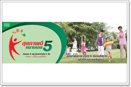 เทสโก้ โลตัส ตอกย้ำปณิธาน ‘เราใส่ใจคุณ’ ที่ยึดมั่นเสมอมา วันนี้ ได้เปิดตัว โครงการ “สุขภาพดี หมายเลข 5” ซึ่งเป็นส่วนหนึ่งในคำมั่นสัญญาของเทสโก้ โลตัส ที่มีต่อคนไทยตลอดระยะเวลาที่ดำเนินธุรกิจในประเทศไทย โดยมีวัตถุประสงค์เพื่อรณรงค์และสนับสนุนให้พนักงานและลูกค้าเทสโก้ โลตัสทุกคน มีสุขภาพร่างกายแข็งแรงและสมบูรณ์ ด้วยหลักง่ายๆ ที่สามารถปฏิบัติได้ทุกวัน คือการรับประทานอาหารให้ครบ 5 หมู่ ควบคู่กับการออกกำลังกายง่ายๆ 5 วันต่อสัปดาห์