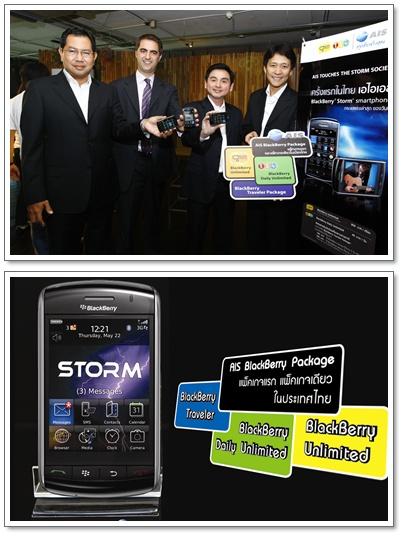 บริษัท แอดวานซ์ อินโฟร์ เซอร์วิส จำกัด (มหาชน) จับมือ Research In Motion (RIM) (Nasdaq: RIMM; TSX: RIM) เปิดตัว BlackBerry? Storm สมาร์ทโฟนทัชสกรีนรุ่นแรกของ BlackBerry และเป็นทัชสกรีนรุ่นแรกของโลกในสไตล์ clickable สามารถเติมเต็มได้ทุกความต้องการทั้งเรื่องงานและส่วนตัวด้วยคุณสมบัติมัลติมีเดียครบครัน พร้อมแพ็คเกจค่าบริการจากเอไอเอส ที่ออกแบบมาพิเศษครั้งแรกในเมืองไทย ตอบโจทย์ตลาด Mass ทุกกลุ่ม ทั้ง Postpaid และ Prepaid รวมถึงชาวต่างประเทศ คาดดันตลาด Mobile data โตตามเป้า