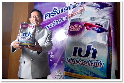 นายบุญฤทธิ์ มหามนตรี กรรมการผู้จัดการ บริษัท ไลอ้อน (ประเทศไทย) จำกัด กล่าวว่า เปา ซิลเวอร์ นาโน สูตรซักกลางคืนไม่ง้อแดด ริเริ่มพัฒนาขึ้นตามนโยบายเทคโนโลยีเพื่อสุขภาพของไลอ้อน เพื่อตอบสนองวิถีชีวิตของคนรุ่นใหม่ที่มีชีวิตที่เร่งรีบ แต่ใส่ใจในเรื่องของสุขภาพ และมีกิจกรรมที่ทำให้เหงื่อออกมาก ขณะเดียวกันก็เพื่อให้สอดคล้องกับสภาพอากาศร้อนชื้นของไทยซึ่งทำให้เชื้อโรคเติบโตได้ง่าย โดยคุณสมบัติของเปา ซิลเวอร์นาโน จะมีประสิทธิภาพในการขจัดแบคทีเรียในขณะซักได้มากกว่า 99.99% และซิลเวอร์นาโนส่วนหนึ่งจะเกาะติดอยู่ในเส้นใยผ้า เพื่อขจัดกลิ่นอับในกรณีที่มีความชื้นเกิดขึ้นอันเนื่องมาจากเหงื่อของผู้สวมใส่ ซึ่งมักเป็นปัญหาของผู้ที่มีเหงื่อมากหรือผู้ที่รักการออกกำลังกาย ดังนั้นการพัฒนาเปา ซิลเวอร์นาโนครั้งนี้จึงถือว่าเป็นการป้องกันการเกิดกลิ่นอับชื้นได้อย่างสมบูรณ์แบบ และหากต้องซักและตากผ้าตอนกลางคืน หรือในที่ไม่มีแดด ผ้าก็จะไม่มีกลิ่นอับ ทำให้หมดกังวล เสริมสร้างความมั่นใจ ซึ่งนับได้ว่าเป็นนวัตกรรมใหม่ล่าสุดของผงซักฟอก เพราะเป็นครั้งแรกที่ใช้เทคโนโลยีนาโน และยังเป็นครั้งแรกที่มีการใช้ซิลเวอร์นาโนที่พัฒนาจากฝีมือนักวิจัยชาวไทย ซึ่งเกิดขึ้นจากความร่วมมือถ่ายทอดเทคโนโลยีระหว่างภาควิชาเคมี คณะวิทยาศาสตร์ จุฬาลงกรณ์มหาวิทยาลัย กับบริษัท ไลอ้อน นับเป็นการใช้ประโยชน์จากความรู้ความสามารถและผลงานวิจัยของบุคลากรในภาครัฐ ให้ขยายสู่ภาคอุตสาหกรรม ช่วยเพิ่มมูลค่าผลงานวิชาการของไทยอีกทางหนึ่ง