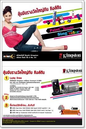 29 มิถุนายน 2552 – Kingston Technology Company, Inc ผู้พัฒนาและผลิตเมโมรี่รายใหญ่ของโลก เดินหน้าตอกย้ำสร้างชื่อเสียงในตลาดเมืองไทยอย่างเข้มข้น เตรียมปล่อยโปรโมชั่นเด็ดกระตุ้นผู้ซื้อภายในงาน Commart X-Gen 2009 ระหว่างวันที่ 2 – 5 กรกฎาคม ศกนี้ ณ ศูนย์การประชุมแห่งชาติสิริกิติ์ กรุงเทพฯ เชิญพบกับโปรโมชั่นสุดพิเศษมากมายได้ที่บูธคิงส์ตัน ณ บริเวณบูธหมายเลข A1 โซน C ค้นหาข้อมูลเพิ่มเติมเกี่ยวโปรโมชั่นคิงส์ตัน แวะชม www.kingston.com/thailand/commartxgen