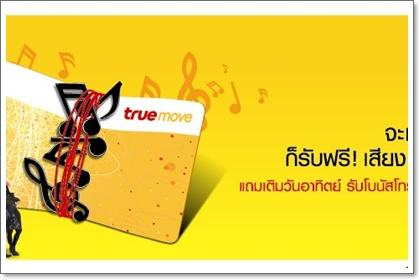 โทร *419988 (ไม่เสียค่าบริการ) ระบบจะส่งรายชื่อเพลงให้ผ่าน SMS หลังจากเติมเงินแล้วสามารถโทรรับสิทธิ์โหลดเพลงรอสายโดนๆ ได้ทันทีที่ TrueMove Assistant โทร 2222 (นาทีละ 5 บาท)