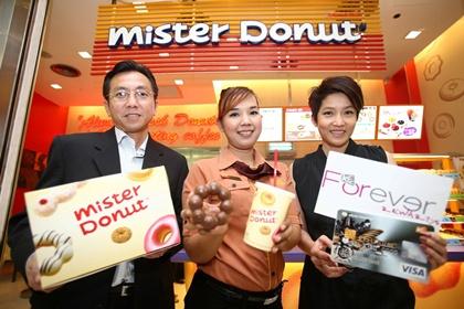 นางประณยา นิถานานนท์ ผู้อำนวยการ สายงานธุรกิจบัตรเครดิต “เคทีซี” หรือ บริษัท บัตรกรุงไทย จำกัด (มหาชน) ร่วมกับ นายสุชีพ ธรรมาชีพเจริญ ผู้จัดการทั่วไป แบรนด์ มิสเตอร์ โดนัท ผู้นำตลาดโดนัทเมืองไทย บริหารงานโดย บริษัท เซ็นทรัล เรสตอรองส์ กรุ๊ป จำกัด (CRG) นำเสนอความอร่อยสุดคุ้มกับ “แคมเปญแลก 1 ฟรี 1” เอาใจคนรักมิสเตอร์ โดนัท เพียงสมาชิก บัตรเครดิตเคทีซีใช้คะแนนสะสม KTC Forever Rewards แลกรับความอร่อยกับ 2 ชุดสุดคุ้ม 1) 599 คะแนน แลกรับพอนเดอริง หรือซากุ ซากุ 1 ชิ้น โดนัท 1 ชิ้น และน้ำส้มหรือน้ำฟรุตพันซ์ 16 ออนซ์ 1 แก้ว มูลค่ารวม 56 บาท พร้อมรับฟรีทันทีโดนัทอีก 1 ชิ้น 2 ) 899 คะแนน แลกรับพอนเดอริง หรือซากุ ซากุ 3 ชิ้น และโดนัท 3 ชิ้น มูลค่ารวม 102 บาท พร้อมรับฟรีโดนัทอีก 2 ชิ้น ณ ร้านมิสเตอร์ โดนัททุกสาขาทั่วประเทศ (ยกเว้นสาขาสุวรรณภูมิและเซ็นทรัลเฟสติวัลพัทยาบีช) นอกจากนี้ สมาชิกเคทีซียังสามารถใช้คะแนนสะสม KTC Forever Rewards ทุกๆ 1,000 คะแนน แทนเงินสด 100 บาท เพื่อใช้จ่ายที่ร้านมิสเตอร์ โดนัท ได้ตั้งแต่วันนี้ – 31 ธันวาคม 2553