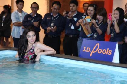 ในภาพ คุณธนูศักดิ์ พึ่งเดช(ที่ 3 จากขวา) กรรมการผู้จัดการ คุณนิพัทธ์ พัชราภา (ขวาสุด) ผู้อำนวยฝ่ายการการตลาด ร่วมถ่ายภาพ โดยงานนี้มี “เมย์-พิชญ์นาฎ สาขากร” ดารา-นางแบบสาวเซ็กซี่ตัวแม่ มาลงสระว่ายน้ำสร้างสีสันในงานให้ผู้ที่สนใจได้สัมผัสกันแบบใกล้ชิดติดขอบสระ