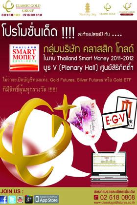 ล่าสุดบริษัทฯ ได้เข้าร่วมงานไทยแลนด์ สมาร์ท มันนี่ 2011-2012 ถือได้ว่าเป็นอีกหนึ่งงานใหญ่สำหรับภาคธุรกิจการเงินที่จัดส่งให้กับนักลงทุนช่วงท้ายปี สำหรับกลุ่มบริษัท คลาสสิก โกลด์ เองก็ได้เตรียมโปรโมชั่นที่น่าสนใจไปมากมาย อาทิ เปิดบัญชี Gold Spot Online ,Gold Futures,Silver Futures หรือ Gold ETF ภายในงาน จะได้ 1 สิทธิ์ลุ้น จี้ทองคำแท้ ,Gift Voucher Central มูลค่า 500 บาท หรือตั๋วชมภาพยนตร์จากเครือเมเจอร์และอีจีวี 2 ใบ แต่หากมีการโอนเงินภายในงานทุกๆ 50,000 บาท จะได้เพิ่มอีก 1 สิทธิ์ในการลุ้นรางวัลมากขึ้นไปอีก