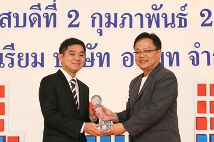 อนุวัตร เฉลิมไชย (ซ้าย) แบรนด์ไดเร็คเตอร์ สำนักงานบริหารแบรนด์ เอสซีจี ผลิตภัณฑ์ก่อสร้าง รับรางวัล “สุดยอดจอมยุทธการตลาด ประจำปี 2554” จาก พัชระ สารพิมพา (ขวา) ผู้อำนวยการฝ่ายคลื่นวิทยุ FM 100.5 MHz ในโอกาสที่เอสซีจีได้รับการจัดอันดับบริษัทที่มีกลยุทธ์และแนวคิดในการทำการตลาดที่โดดเด่นและประสบความสำเร็จ เป็นแบบอย่างที่ดีให้กับองค์กรอื่นๆ ที่จะนำไปพัฒนาต่อไป จัดโดย สถานีวิทยุ อสมท. FM 100.5 News Network ซึ่งผลิตรายการ “จอมยุทธการตลาด” นำเสนอข่าวการตลาดในแวดวงธุรกิจที่น่าสนใจ พร้อมวิเคราะห์เจาะลึก กลยุทธ์แนวคิดด้านการตลาดของบริษัทชั้นนำของประเทศ