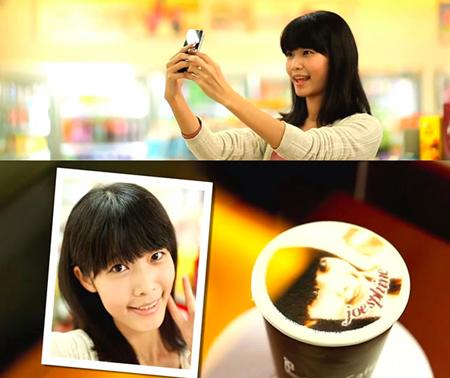 แต่วิธีล่าสุดที่ Let’s cafe จาก Family Mart เลือกใช้ได้ผลทั้งเชิงของยอดขายและเป็น Buzz ไปทั่วโลกก็คือ Latte Art หรือการนำเครื่องพิมพ์ภาพถ่ายลงบนโฟมของถ้วยกาแฟลาเต้ โดยภาพถ่ายนั้นส่งจากมือถือ แล้วใช้ผงสีน้ำตาล (ที่ทานได้) พิมพ์ลงบนโฟมสีขาวของกาแฟลาเต้ ทั้งยังใส่ข้อความหวานๆ ลงไปในรูปได้อีกด้วย