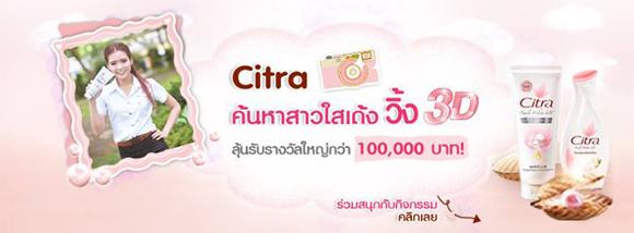 อย่างแคมเปญล่าสุดของโลชั่นบำรุงผิว “ซิตร้า” ที่ต้องการโปรโมทโปรดักส์ใหม่ “Citra Pearly White UV” พร้อมกับสรรพคุณที่ว่า “ผิวกระจ่างใส 3 มิติ”ไม่ต้องบอกก็รู้ว่าสินค้าตัวนี้พร้อมที่จะประโคมความขาวให้กับสาวไทยขนาดไหน จึงมาพร้อมกับแคมเปญ “Citra ค้นหาสาวใสเด้ง วิ๊ง 3D”