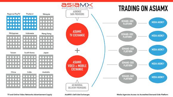 เอเชีย มีเดีย เอ็กซ์เชนจ์ Asia Media Exchange (AsiaMX) เปิดตัวโปรแกรมระบบซื้อขายแลกเปลี่ยนโฆษณาทางโทรทัศน์หลังจากการประกาศจัดหาทุนเมื่อไม่นานมานี้ ซึ่งช่วยให้นักโฆษณาเข้าถึงกลุ่มเป้าหมายอย่างมีประสิทธิภาพ พร้อมสิทธิพิเศษในการเข้าถึงเครือข่ายโฆษณาโทรทัศน์ที่มีมูลค่าสูง และนักโฆษณาได้รับประโยชน์จากกระบวนการซื้อขายแบบอัตโนมัติ