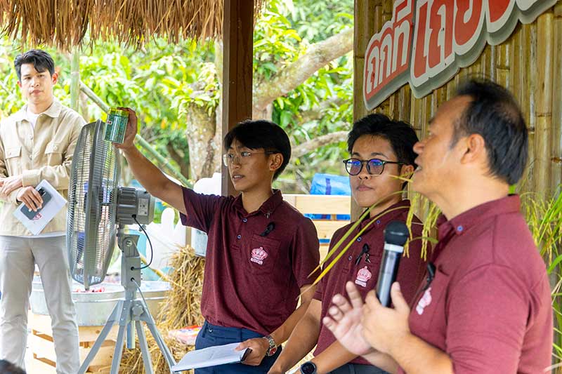 3. ฐานสุดท้าย “จุดพักชมความสำเร็จ”: ที่พาทุกคนมาดูการเติบโตของข้าวจากการใช้ 40 มงกุฎ กันแบบคาตา งามขนาดนี้ก็เลยเป็นจุดถ่ายรูปของพ่อแม่พี่น้องเกษตรกรที่มาร่วมกิจกรรม