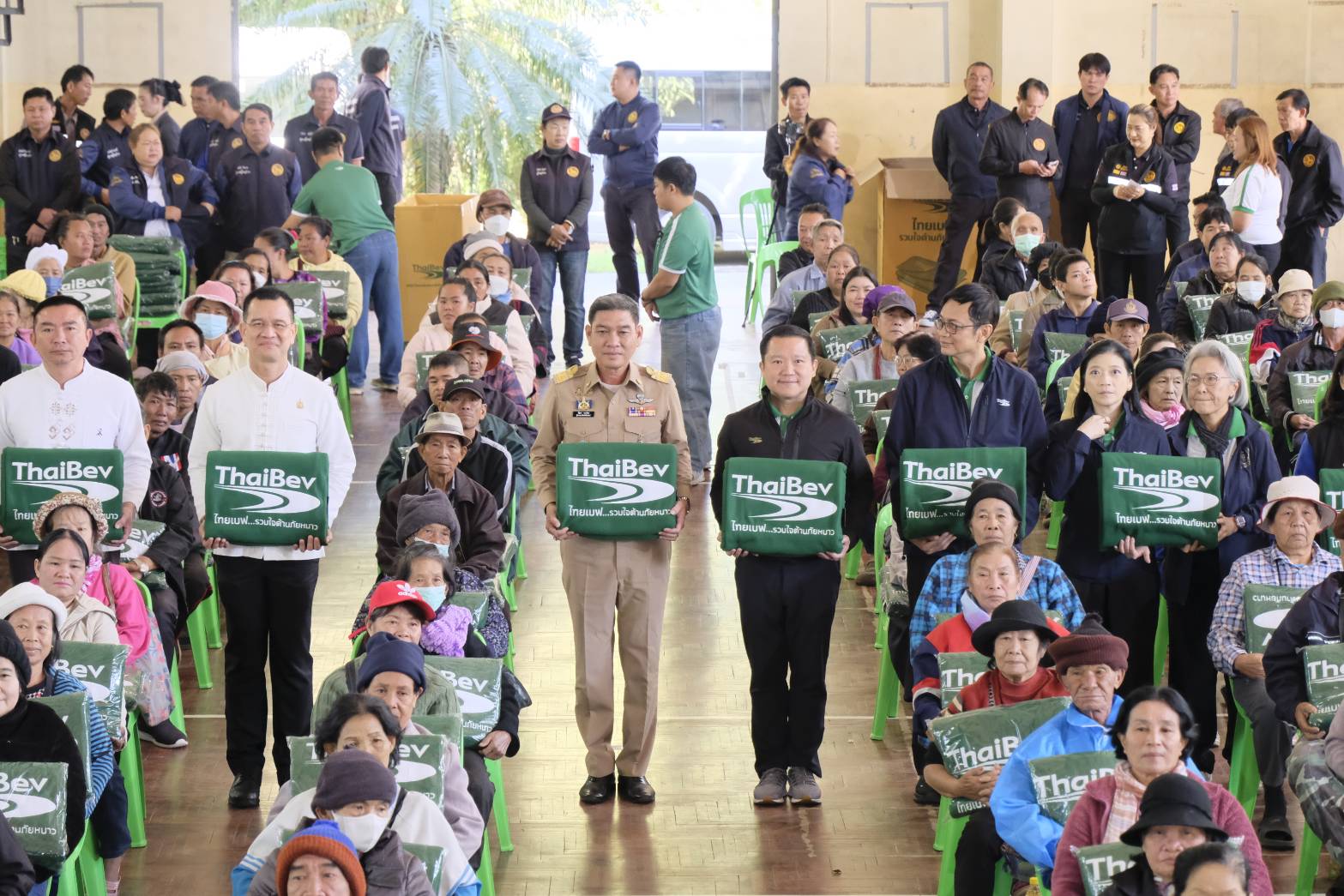 จากจุดเริ่มต้นของโครงการ “ไทยเบฟ…รวมใจต้านภัยหนาว” ของ บริษัท ไทยเบฟเวอเรจ จำกัด (มหาชน) ที่ได้ผสานความร่วมมือกับ กระทรวงมหาดไทย โดยกรมป้องกันและบรรเทาสาธารณภัย พร้อมด้วยภาคีเครือข่าย ทุกภาคส่วนเพื่อร่วมสานต่อปณิธานแห่งการ “ให้” ของคุณเจริญ และคุณหญิงวรรณา สิริวัฒนาภักดี ที่ได้กล่าวไว้ว่า “คนไทย ให้กันได้” อันเปี่ยมไปด้วยความห่วงใยที่มีต่อพี่น้องประชาชนจำนวนมากที่ได้รับความเดือดร้อน และผลกระทบอย่างรุนแรงจากภัยพิบัติหนาวในพื้นที่ภาคเหนือ และภาคตะวันออกเฉียงเหนือ รวมถึงในอีกหลาย ๆ พื้นที่ของประเทศไทยที่มีความห่างไกล ทุรกันดาร ที่ต้องดำรงชีวิตอยู่ท่ามกลางสภาพอากาศที่หนาวเย็นจัด และยิ่งทบทวีคูณยิ่งขึ้นในช่วงเวลากลางคืนของฤดูหนาว ที่วันนี้นับเป็นเวลา 26 ปี ของคาราวานผ้าห่มผืนเขียว ที่ได้ออกเดินทางส่งมอบรอยยิ้ม และความอบอุ่นภายใต้ “ผ้าห่มผืนเขียว” ให้ทุกคนได้บรรเทาความหนาวเย็น ปีละจำนวน 200,000 ผืน นับตั้งแต่ปี 2543 เป็นต้นมา จำนวนกว่า 5,200,000 ผืน พร้อมกับมอบโอกาสในการเข้าถึงความช่วยเหลือด้านต่าง ๆ มาอย่างต่อเนื่อง ทั้งอาหาร น้ำดื่ม ข้าวของเครื่องใช้ในการดำรงชีพที่มีความจำเป็น รวมถึงแผนการดูแลที่ครอบคลุมทั้งเรื่องสุขภาพ การส่งเสริมทางด้านการศึกษา และกีฬา การส่งเสริมในด้านการสร้างอาชีพเพื่อให้เกิดรายได้ให้กับชุมชนอย่างยั่งยืน