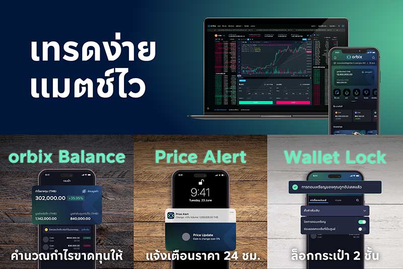 ออร์บิกซ์เป็นหนึ่งในตัวอย่างที่พิสูจน์ให้เห็นว่า แพลตฟอร์มสัญชาติไทยไม่แพ้ใครในโลก เพราะมีทั้งนวัตกรรม และมีมาตรฐานในระดับสากล ตอบโจทย์ผู้ใช้งานทุกระดับ ไม่ว่าจะเป็นนักลงทุนมือใหม่ หรือนักลงทุนอาชีพ สามารถเทรดสินทรัพย์ดิจิทัลในแพลตฟอร์มไทยได้มาตรฐานไม่แพ้สากลเลยทีเดียว ชูจุดเด่นด้วย 3 ฟีเจอร์เด็ดที่ช่วยให้การลงทุนง่ายขึ้นและมั่นใจยิ่งกว่าเดิม ได้แก่ orbix Balance” ระบบช่วยคำนวณต้นทุนเหรียญแบบอัตโนมัติ ช่วยให้เห็นกำไร-ขาดทุนแบบเรียลไทม์ โดยไม่ต้องคำนวณเอง Price Alert” ตั้งเตือนราคาที่ใช่ ไม่ต้องเฝ้าจอ และไม่พลาดทุกโอกาสการซื้อขาย โดยสามารถเลือกเหรียญที่ต้องการให้แจ้งเตือนได้เอง และ “Wallet Lock” ระบบล็อกกระเป๋าสองชั้น เพิ่มความปลอดภัยอีกระดับ ลูกค้าสามารถตั้งค่าเปิด-ปิดได้ด้วยตนเอง