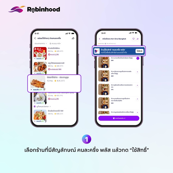 -กดที่แบนเนอร์ ‘ฟู้ดเดลิเวอรี่’ เลือก Robinhood