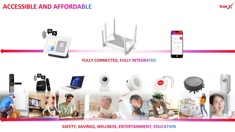 อีกมุมหนึ่งก็คือเป็นการเพิ่มมูลค่าให้การ Convergence แข็งแรงยิ่งขึ้น ให้บริการมากกว่าเครือข่าย แต่มีเทคโนโลยีทั้ง IoT และ AI ที่มีความปลอดภัย ประหยัด และสะดวกครบวงจร ทำให้คนไทยเข้าถึง AI มากขึ้น ใช้งานง่าย มีชีวิตความเป็นอยู่ที่ดีขึ้น ซึ่งในไทยยังไม่มีบริษัทไหนที่ทำในส่วนของ B2C ส่วนใหญ่จะเป็น B2B ทรูได้ผนวกอุปกรณ์ เข้ากับเครือข่าย และอินเทอร์เน็ตได้