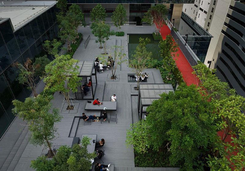 อีกส่วนที่สำคัญคือ One City Centre เว้นพื้นที่หน้าตึกสร้างเป็นสวนสีเขียว 3 ไร่ กลายเป็นปอดแห่งใหม่ใจกลางเมือง ที่สำคัญคือเป็นปอดที่คนทั่วไปสามารถเข้ามาใช้งานได้แบบสาธารณะ ท่ามกลางตึกสูงมากมายในย่าน จุดนี้น่าจะเป็นแหล่งพักผ่อนหย่อนใจแห่งใหม่ของคนทำงานได้เลย